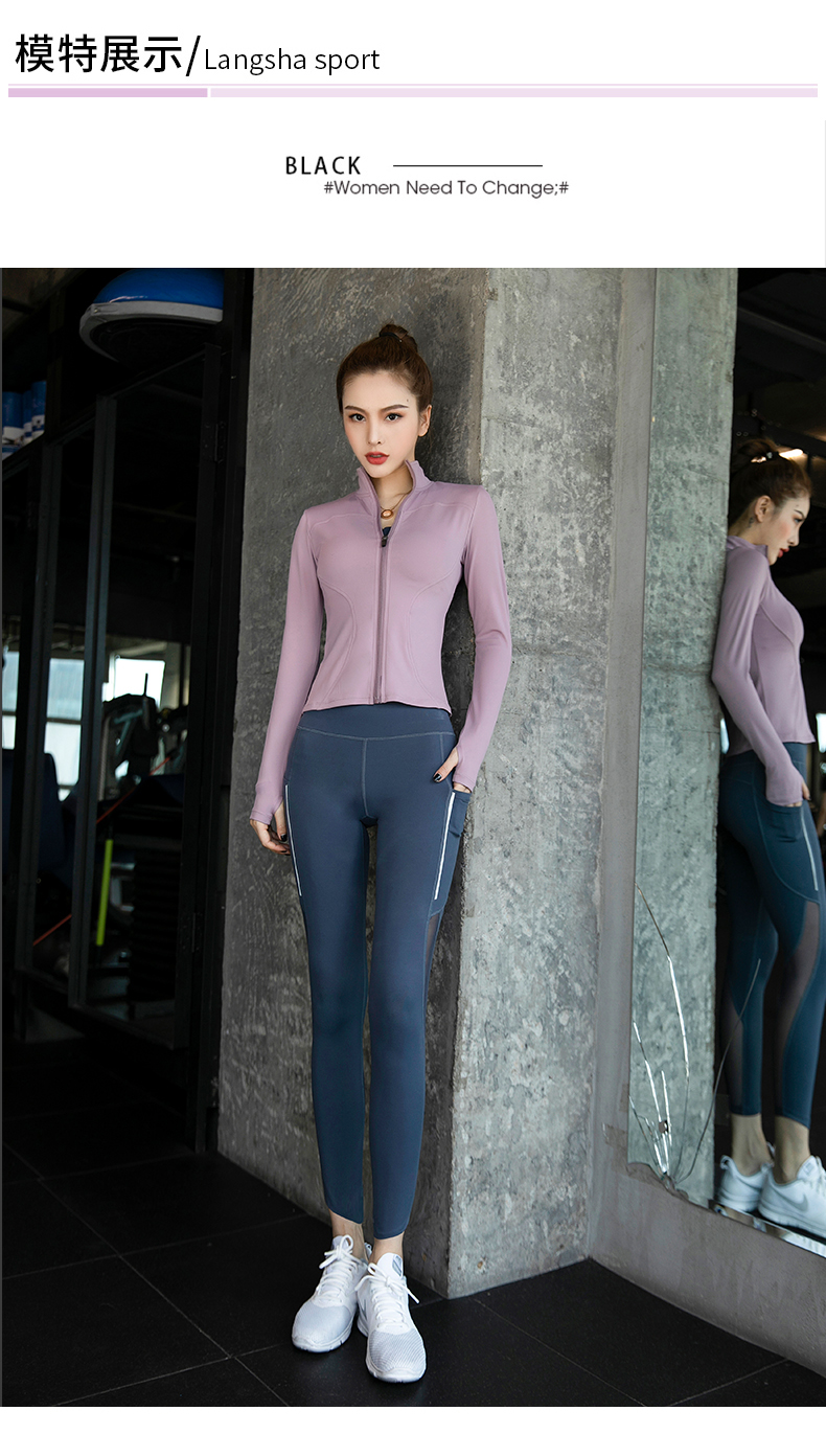 浪莎健身衣女緊身跑步速干拉鏈秋冬戶外立領黑色瑜伽長袖運動外套